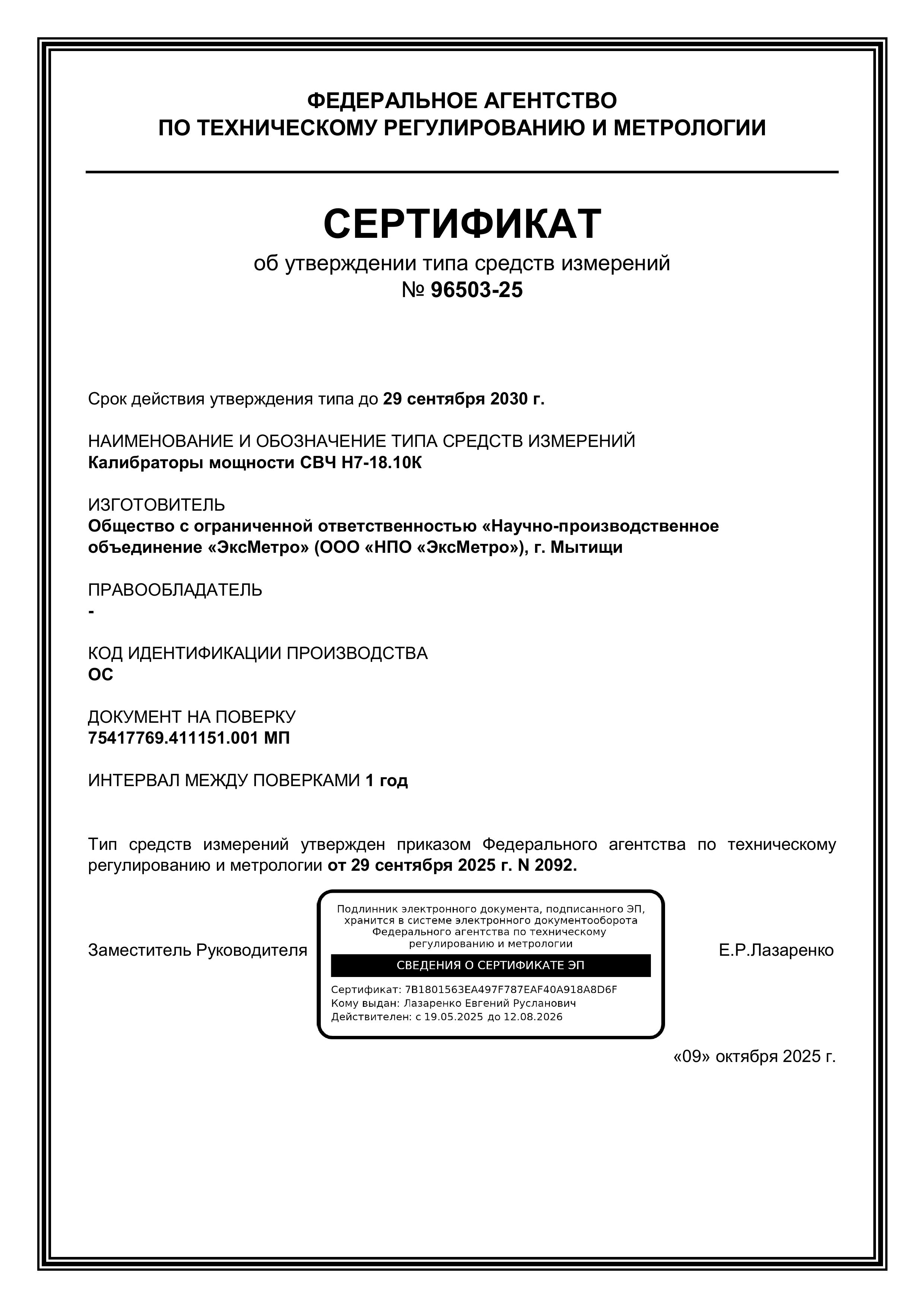 Научно-производственное объединение «ЭксМетро» специализируется на разработке ваттметров СВЧ поглощаемой и проходящей мощности типов М3, и средств их метрологического обеспечения - калибраторов мощности СВЧ типов Н7, а также осуществляет широкий спектр услуг в области метрологического обеспечения